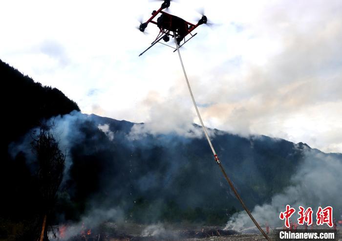 圖為滅火無人機實施滅火。費賢浩 攝