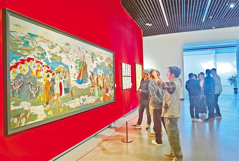圖為川藏兩地的美術(shù)家們和觀眾在參觀畫展。記者 潘璐 攝