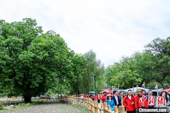 圖為粵港澳大灣區(qū)文旅商和援藏老干部代表探訪山南加查熱果村千年核桃林。山南市文化和旅游局 供圖