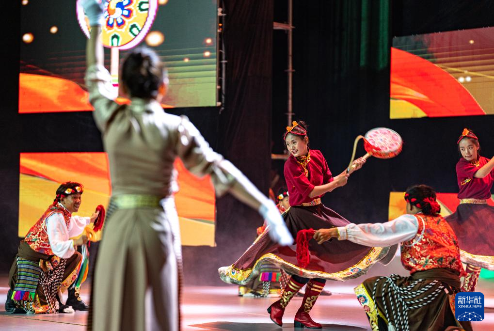 拉薩江蘇中學(xué)的學(xué)生在表演節(jié)目(9月25日攝)。新華社記者 丁增尼達 攝