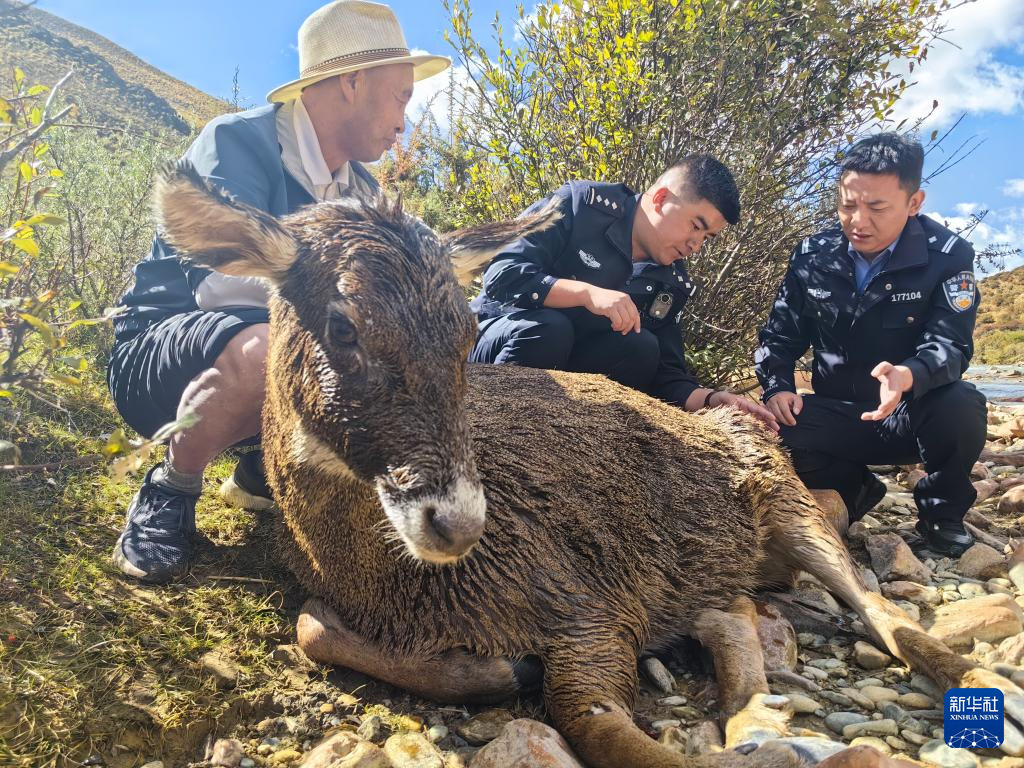 當(dāng)日,在西藏拉薩市墨竹工卡縣扎西崗鄉(xiāng),一只受傷的國家二級保護(hù)動物馬鹿在渡河時被困于河中。墨竹工卡縣扎西崗鄉(xiāng)派出所干警和獸醫(yī)發(fā)現(xiàn)被困馬鹿后,立即下河展開救援,最終將馬鹿救起。據(jù)介紹,當(dāng)?shù)毓哺删磕甓紩M(jìn)行野生動物救援行動,為這里的野生動物保駕護(hù)航。