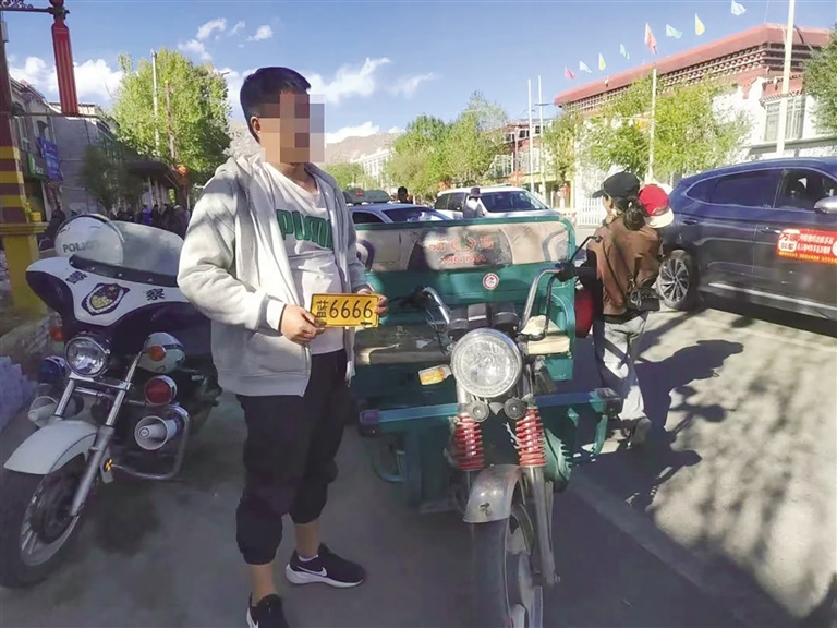 電動(dòng)自行車假套牌被拉薩交警查獲。圖由拉薩交警提供