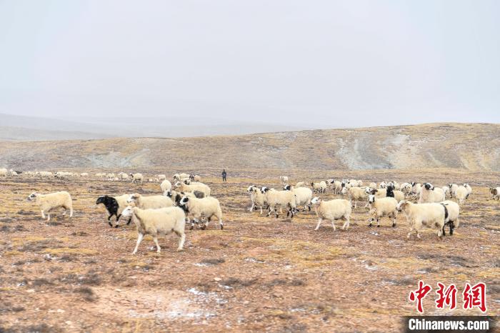 10月23日,西藏自治區(qū)那曲市安多縣多瑪鄉(xiāng)牧民在雪中放牧。當(dāng)日,一場(chǎng)雪將藏北草原裝扮得如詩(shī)如畫(huà)。牧民們?cè)谶@銀裝素裹的天地間,開(kāi)始了雪中放牧的生活。牛羊在雪地中悠閑覓食,牧民駕駛著摩托車(chē),在雪中放牧,形成了一幅動(dòng)人的風(fēng)景畫(huà)。圖為羊群在草原上覓食。中新社記者 貢嘎來(lái)松 攝