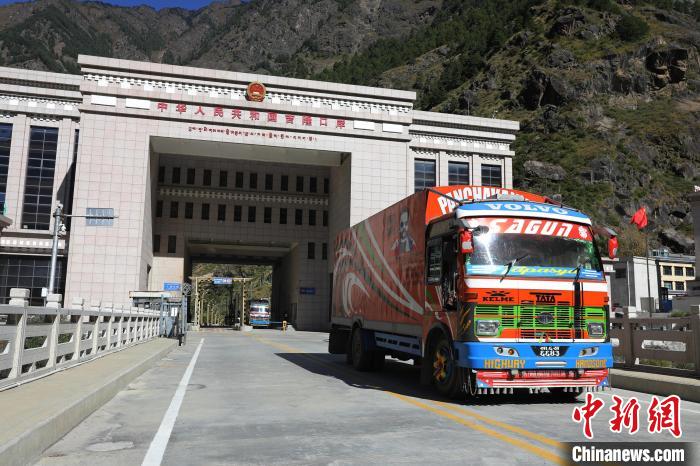 圖為10月29日上午,即將駛離吉隆口岸的尼泊爾貨車。肖富貴 攝