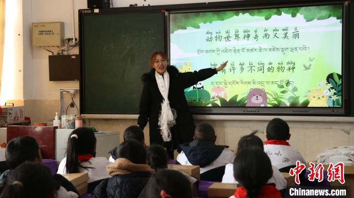 圖為西南林業(yè)大學(xué)科普?qǐng)F(tuán)隊(duì)成員為學(xué)生上生態(tài)科普課。那曲市林草局供圖