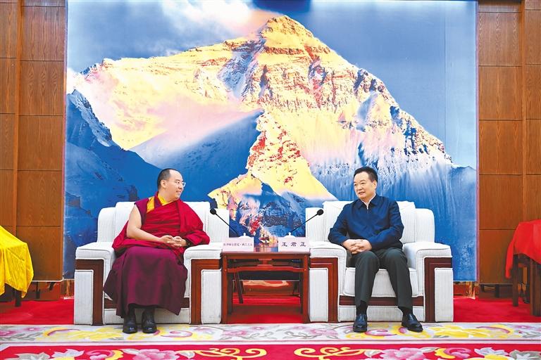 近日,自治區(qū)黨委書記王君正在日喀則市調(diào)研宗教工作。這是調(diào)研結(jié)束后,王君正在日喀則市會見班禪額爾德尼·確吉杰布。記者 旦增西旦 攝