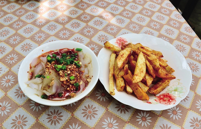 除了真實而美好的環(huán)境,涼粉店當(dāng)然以涼粉為主打。卡擦涼粉店的涼粉價格親民,Q彈爽滑的涼粉配上店家特制的辣椒,再撒上一層花生碎,看似簡單口感卻層次豐富,讓人回味無窮。除了涼粉,卡擦涼粉店還供應(yīng)炸土豆、涼面等具有代表性的拉薩小吃。嗦粉吃面的同時,能真正感受到日光之城的溫暖和花朵的治愈,這樣的美好體驗可能就在你身旁的小店中。