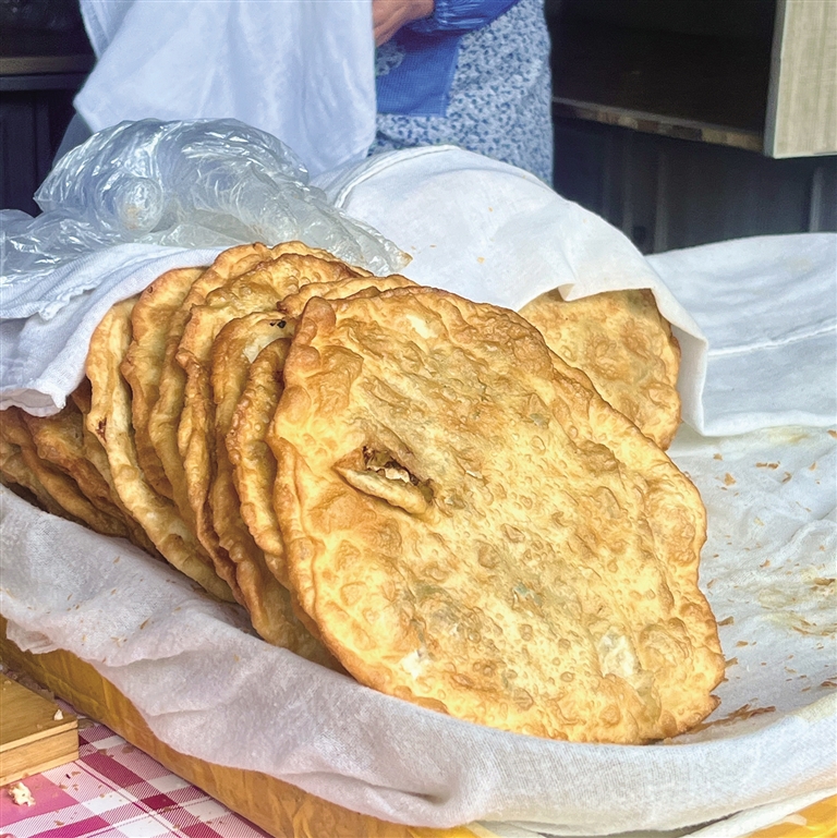 如果你擔(dān)心一份蓋澆飯吃不飽,可以提前在位于同一條巷子的“爺爺奶奶肉餅”買上一個肉餅。這家店同樣是城關(guān)區(qū)的老店,深受拉薩群眾的喜愛。肉餅脆而不油,面粉和肉餡的香氣完美融合。建議上午12:00前去,這家店鋪通常賣完肉餅就早早關(guān)門啦!