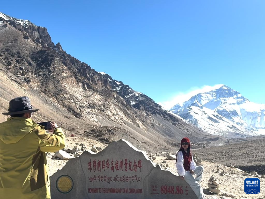 11月20日,游客在珠峰景區(qū)拍照留影。新華社記者 盧丹陽 攝