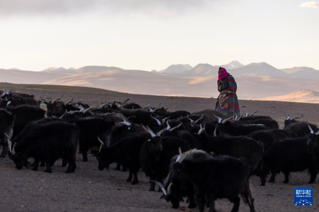 措勤縣紫絨山羊原種場的一位牧工在照看優(yōu)質(zhì)種羊群(11月20日攝)。新華社記者 姜帆 攝
