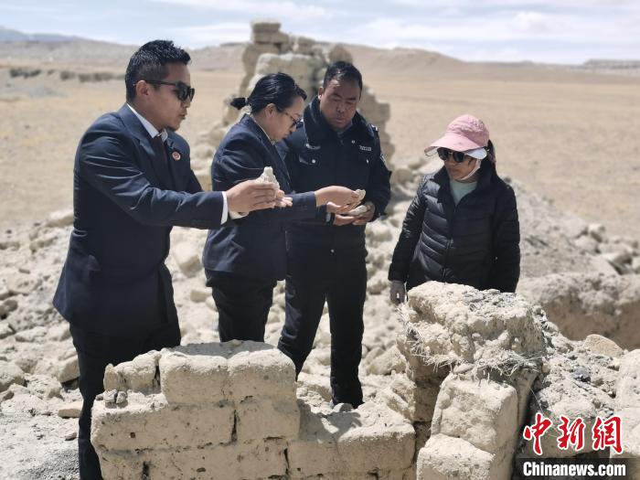 圖為札達(dá)縣人民檢察院干警開展文物“擦擦”搜尋工作。資料圖 阿旺金美 攝