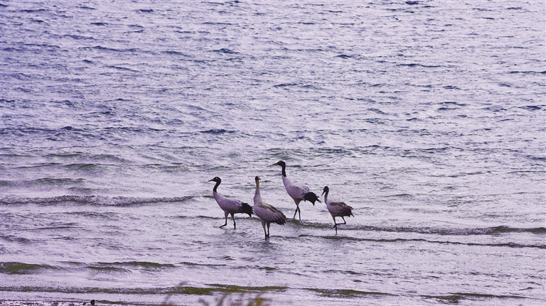 記者了解到,近年來(lái)隨著西藏高度重視黑頸鶴等野生動(dòng)物的保護(hù)工作,通過(guò)建立黑頸鶴國(guó)家級(jí)自然保護(hù)區(qū)、實(shí)施生態(tài)修復(fù)工程,有效改善了黑頸鶴的生存環(huán)境。據(jù)統(tǒng)計(jì),西藏境內(nèi)的黑頸鶴數(shù)量由不到3000只增加到1萬(wàn)多只,種群數(shù)量也在持續(xù)增長(zhǎng)。(圖由洛克 益西曲珍提供)