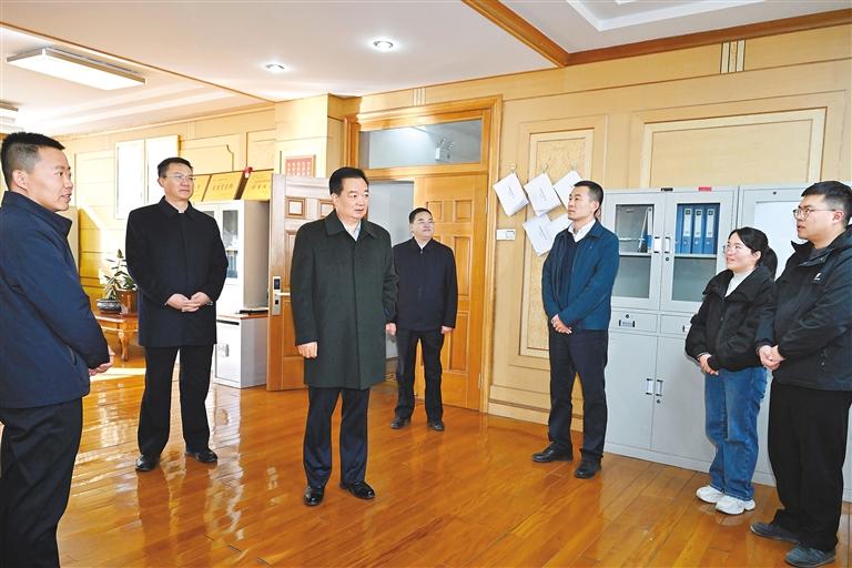 12月2日上午,自治區(qū)黨委書記王君正在自治區(qū)黨委辦公廳系統(tǒng)調(diào)研。這是王君正在自治區(qū)黨委辦公廳法規(guī)處與工作人員親切交流。 本報(bào)記者 李洲 攝