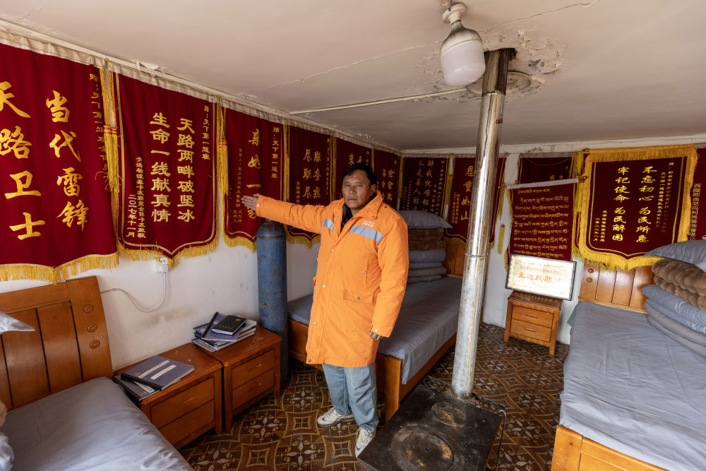 這里的救助站吸引了記者的注意。進(jìn)入房間,內(nèi)有床鋪、氧氣瓶、抗高反藥等物品,四面墻上掛滿錦旗。一封毛筆書(shū)寫(xiě)的紅底感謝信格外顯眼,信中表達(dá)了對(duì)地嘎、東力、次仁多吉三名養(yǎng)路工人的感謝。信中寫(xiě)道:“在那漫長(zhǎng)的10個(gè)小時(shí)里,你們不顧危險(xiǎn)和疲憊,想盡辦法讓我脫險(xiǎn)?!?/p>