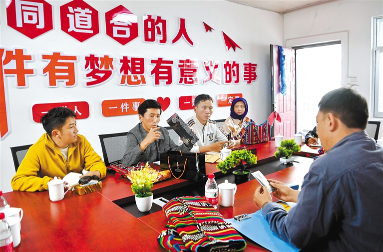 那曲市安多縣的大學(xué)畢業(yè)生倉(cāng)秋多吉聯(lián)合6人創(chuàng)業(yè),于2021年創(chuàng)辦了安多托尕爾倉(cāng)游牧產(chǎn)業(yè)有限責(zé)任公司。公司搭建了民族手工藝產(chǎn)品、土特產(chǎn)銷售平臺(tái),在當(dāng)?shù)卣畠?yōu)化營(yíng)商環(huán)境政策的支持下,創(chuàng)業(yè)團(tuán)隊(duì)逐步擴(kuò)大,帶動(dòng)了當(dāng)?shù)剞r(nóng)牧民產(chǎn)業(yè)興旺?!D為倉(cāng)秋多吉(左二)和團(tuán)隊(duì)核心成員商討產(chǎn)品銷售提升策略。(資料圖片) 新華社記者 張汝鋒 攝