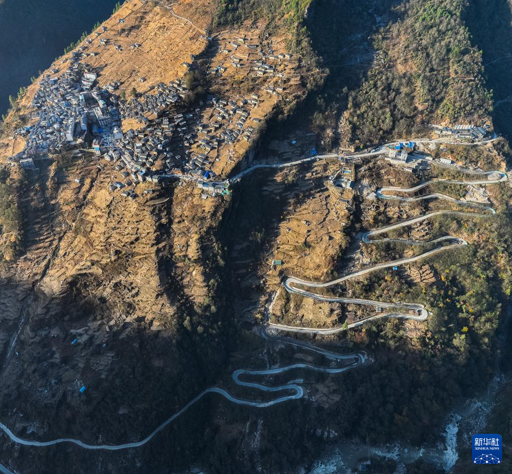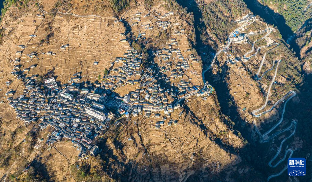 12月13日,陳塘鎮(zhèn)夏爾巴男子在自家屋頂編制竹簍。