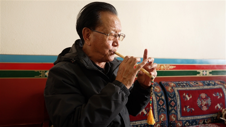 如今在西藏,不僅有像次旦這樣的非遺傳承人堅守著鷹笛文化的傳承火種,還有那曲市藝術(shù)團(tuán)、西藏自治區(qū)歌舞團(tuán)、西藏大學(xué)藝術(shù)學(xué)院三處鷹笛傳習(xí)基地。鷹笛作為藏族古老的吹奏樂器,歷史悠久,曾輝煌一時,如今卻瀕臨消逝。其獨(dú)特的構(gòu)造、優(yōu)美的音色、強(qiáng)烈的藝術(shù)表現(xiàn)力以及眾多獨(dú)特演奏技巧,在歷代音樂人的傳承下得以延續(xù),次旦和玉古先生成功申報非物質(zhì)文化遺產(chǎn)傳承人便是有力見證。