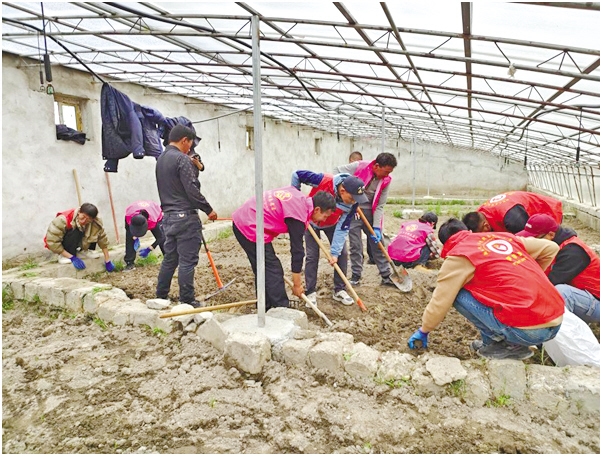 圖為薩爾鄉(xiāng)開(kāi)展“志愿紅”播種“愛(ài)心菜”活動(dòng)。