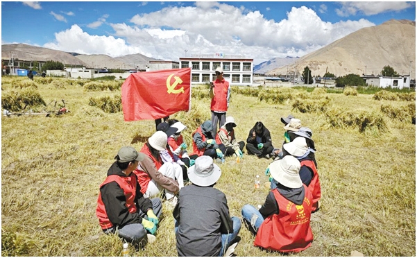 圖為薩爾鄉(xiāng)開(kāi)展“助農(nóng)秋收”志愿活動(dòng)。