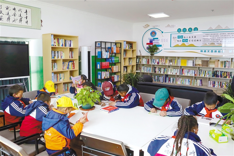 圖為亞熱鄉(xiāng)小學(xué)學(xué)生在“云上書(shū)苑”閱讀書(shū)籍。圖片由里孜出入境邊防檢查站提供