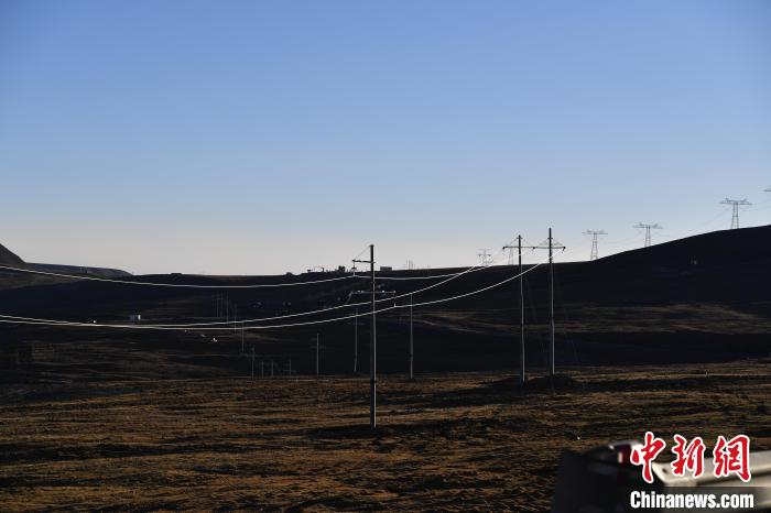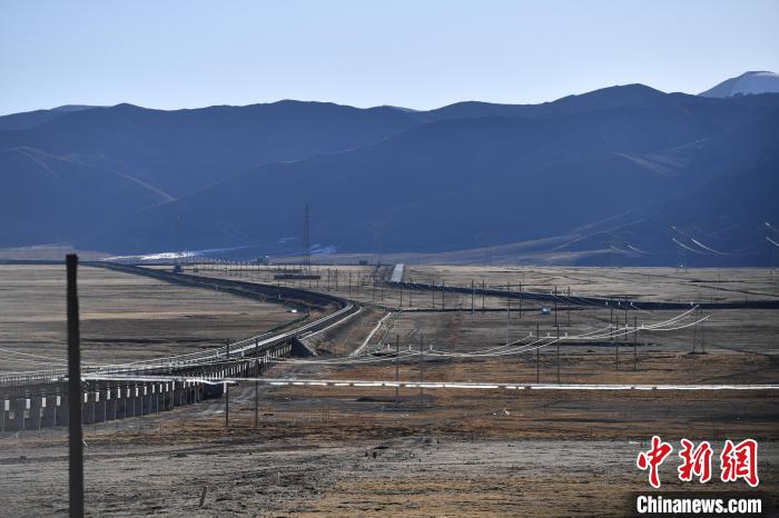 圖為沿青藏公路鋪設的“電力天路”。貢確 攝