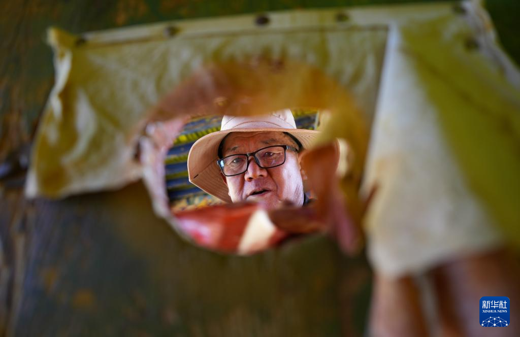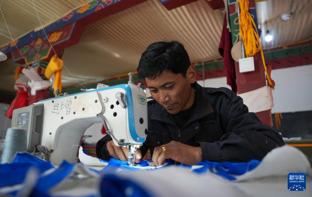 布達拉宮管理處維修科工作人員仁青在縫制門簾(12月4日攝)。新華社記者 晉美多吉 攝