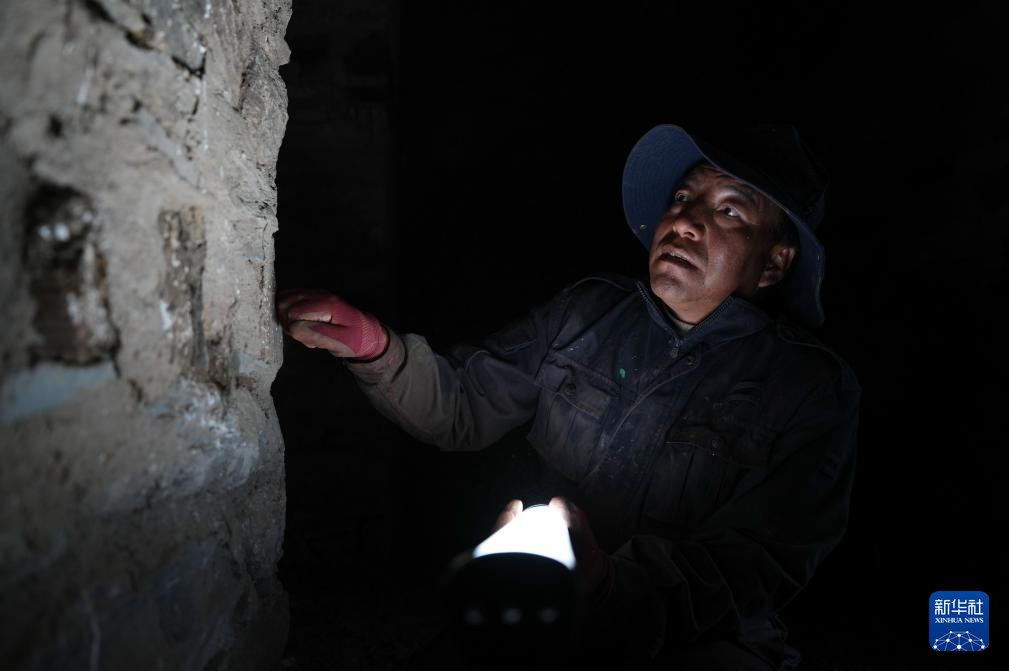 布達拉宮管理處維修科工作人員扎西在巡查布達拉宮地壟(12月4日攝)。新華社記者 晉美多吉 攝