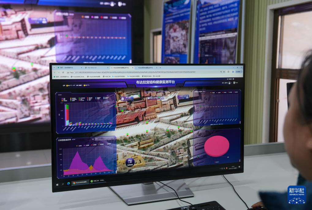 為保護好這一歷史文化瑰寶,布達(dá)拉宮監(jiān)測中心的工作人員利用無人機和3D掃描技術(shù),繪制了宮殿的高清圖像,通過現(xiàn)代科技手段精確記錄和保存下布達(dá)拉宮一磚一瓦的信息,為確保宮殿安全提供數(shù)據(jù)支撐。同時,分布在布達(dá)拉宮各處的傳感器,24小時不間斷監(jiān)測布達(dá)拉宮建筑的安全情況。