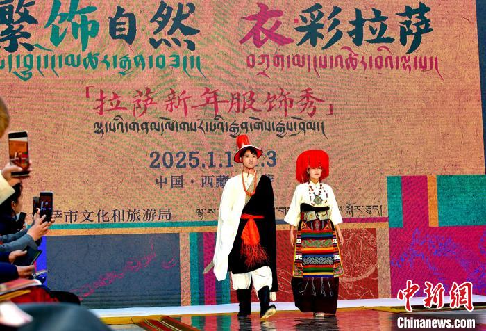 1月1日,西藏拉薩市文化和旅游局舉辦“繁飾自然·衣彩拉薩”新年服飾秀開(kāi)幕大秀,通過(guò)拉薩代表性傳統(tǒng)服飾秀、少兒服飾秀、西藏元素創(chuàng)新服飾秀三部分展現(xiàn)藏地風(fēng)情的同時(shí),展現(xiàn)拉薩傳統(tǒng)與現(xiàn)代服飾文化的風(fēng)采。圖為拉薩新年服飾秀現(xiàn)場(chǎng)。中新社記者 李林 攝