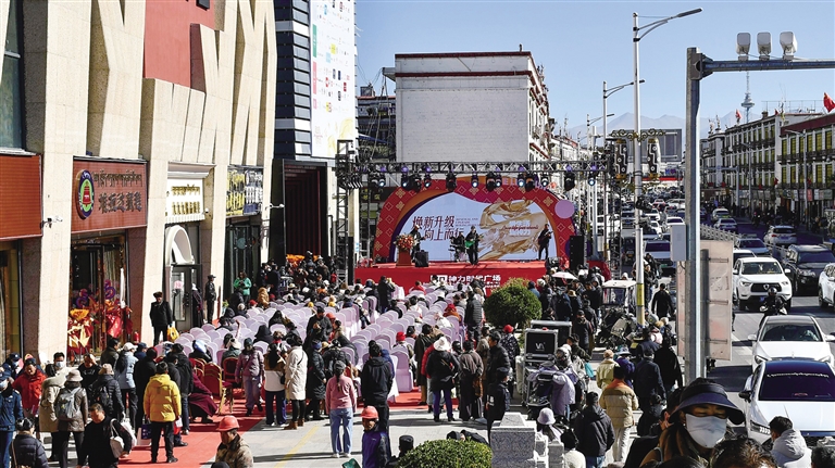1月1日,拉薩神力時代廣場歷經(jīng)7個月左右的裝修升級后,正式恢復(fù)營業(yè),首日銷售額突破300萬元,客流量高達(dá)4.26萬人次。開業(yè)儀式現(xiàn)場人頭攢動、熱鬧非凡,不少市民早早來到商場外,期待一睹新面貌?!拔壹揖驮诟浇?,以前家里人很愛逛這個商場,相信這次裝修升級后,會帶給我們?nèi)碌南M(fèi)體驗(yàn)?!崩_市民貢先生說。