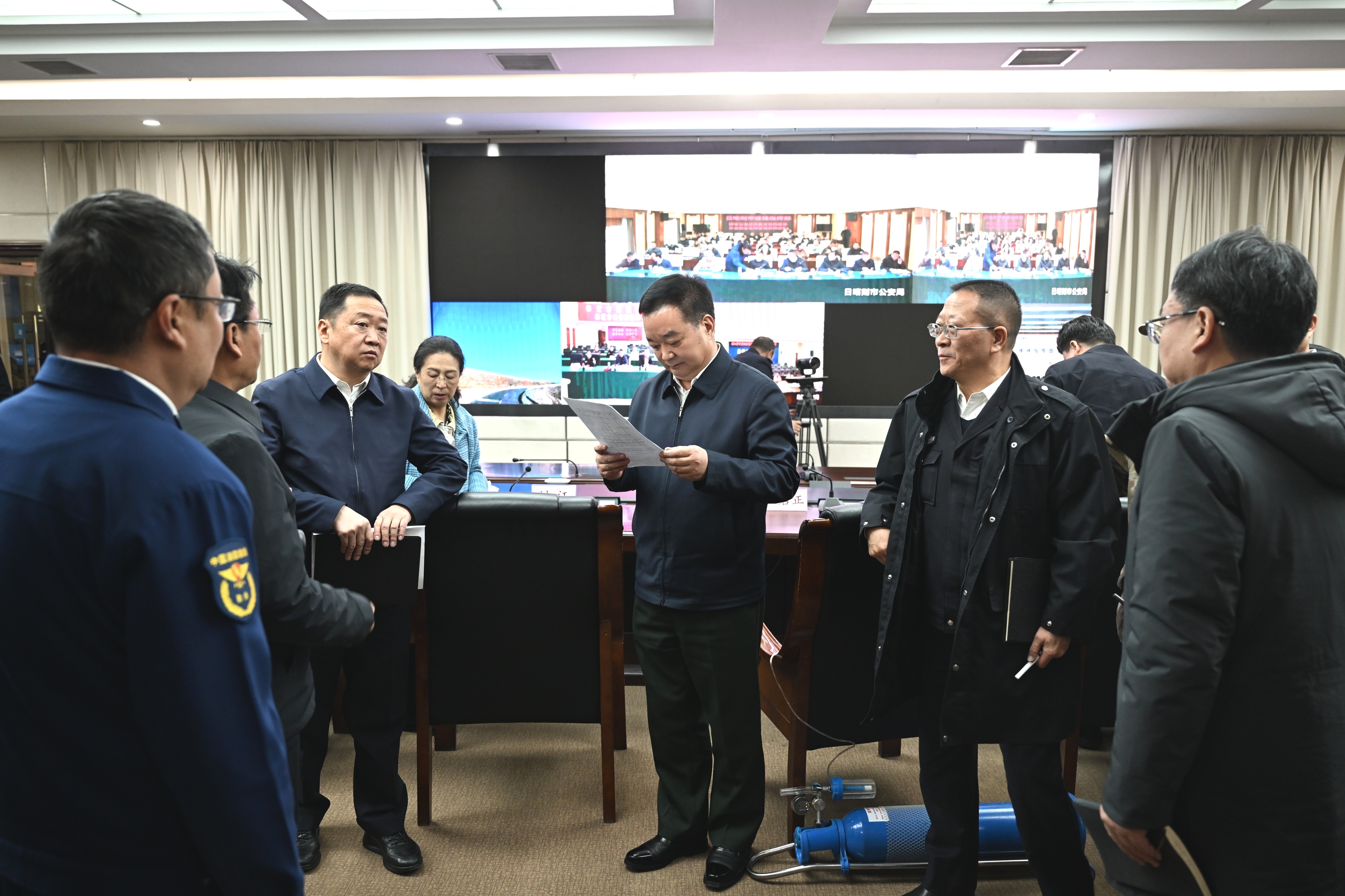 1月7日,自治區(qū)黨委書記王君正在自治區(qū)維穩(wěn)指揮部調(diào)度部署日喀則市定日縣6.8級地震抗震救災(zāi)工作。記者 旦增西旦 攝