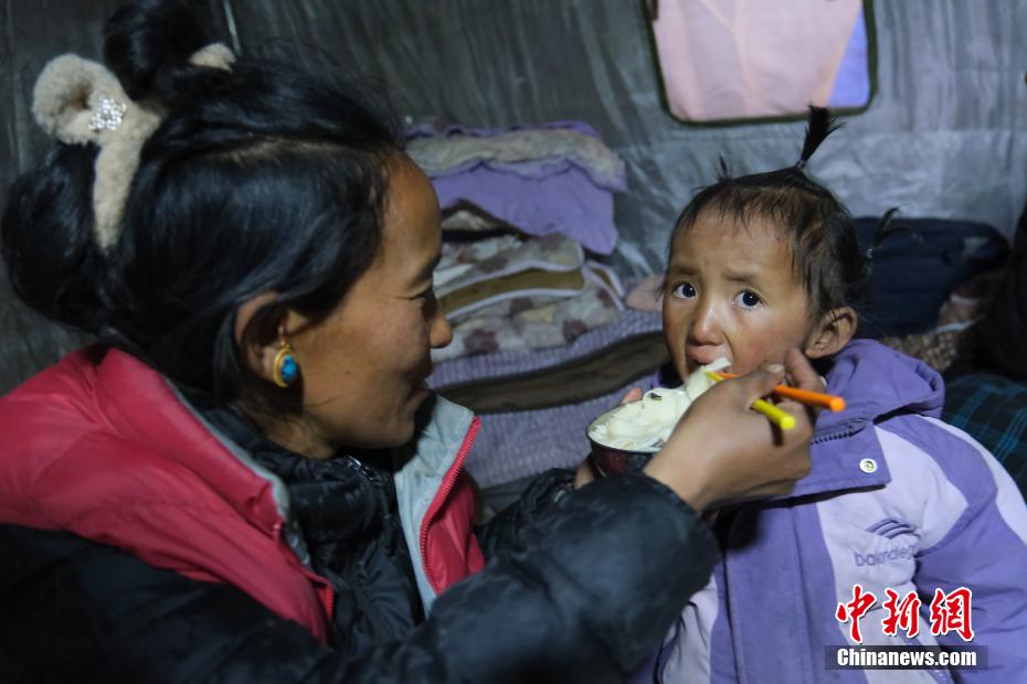 1月7日9時5分,西藏自治區(qū)日喀則市定日縣措果鄉(xiāng)附近(東經(jīng)87.45度,北緯28.50度)發(fā)生6.8級地震。日喀則市官方介紹,經(jīng)初步排查,截至當(dāng)日15時,地震共造成95人遇難,130人受傷,房屋損毀正在統(tǒng)計中。圖為日喀則拉孜縣境內(nèi)的村民在臨時搭建的帳篷里吃飯。中新社記者 江飛波 攝