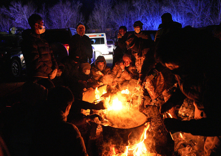 1月7日晚,安置點的受災(zāi)群眾在煮水準(zhǔn)備泡方便面。新華社記者 晉美多吉 攝