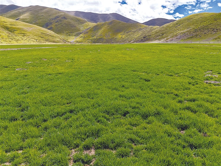 拉薩市當(dāng)雄縣寧中鄉(xiāng)退化草地修復(fù)區(qū)牧草長勢良好。