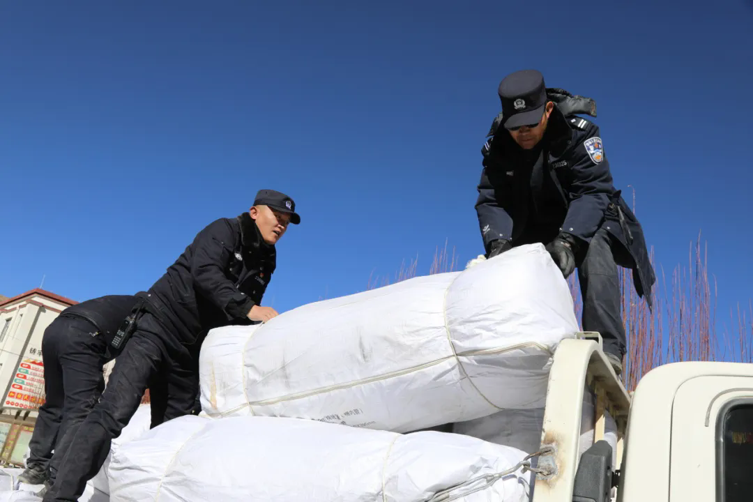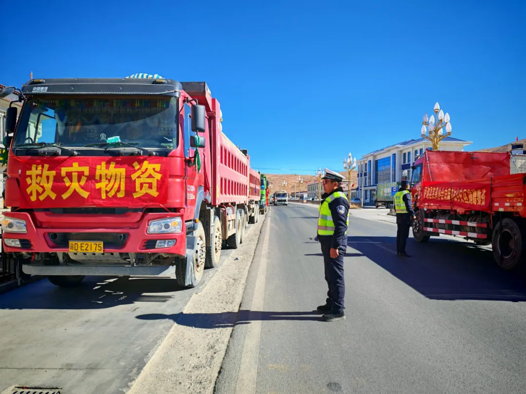 一輛輛物資車,滿載著重振災區(qū)的曙光,源源不斷地向災區(qū)輸送急需的生活物資??拐鹁葹姆置氡貭帲痪箨?、查務一級公安檢查站聯(lián)合各鄉(xiāng)鎮(zhèn)派出所的民輔警們化身保通員,在關(guān)鍵路段與交通樞紐織就一張24小時不間斷的道路保通“守護網(wǎng)”,全力保障駛向定日重災區(qū)的物資運輸車一路暢行。破曉,晨曦微露,他們已精神抖擻地站在崗位,為物資車指引方向;深夜,萬籟俱寂,他們依舊堅守,哪怕嗓音沙啞,仍堅定指揮調(diào)度。他們時刻保持警惕,全力以赴確保這條 “生命通道” 暢通無阻,讓物資以最快速度送達受災群眾手中。
