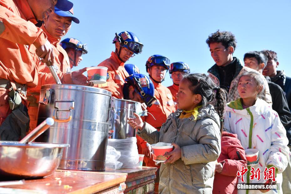 1月9日,西藏自治區(qū)定日縣曲洛鄉(xiāng)措昂村安置點(diǎn),西藏自治區(qū)森林消防總隊(duì)救援人員為受災(zāi)民眾提供飲食。當(dāng)日,位于西藏自治區(qū)定日縣曲洛鄉(xiāng)措昂村安置點(diǎn),西藏各級(jí)救援人員和愛(ài)心企業(yè)不斷轉(zhuǎn)運(yùn)、發(fā)放生活物資、搭建活動(dòng)板房、全力保障受災(zāi)民眾的飲食供應(yīng)等,保障受災(zāi)民眾基本生活。中新社記者 貢嘎來(lái)松 攝