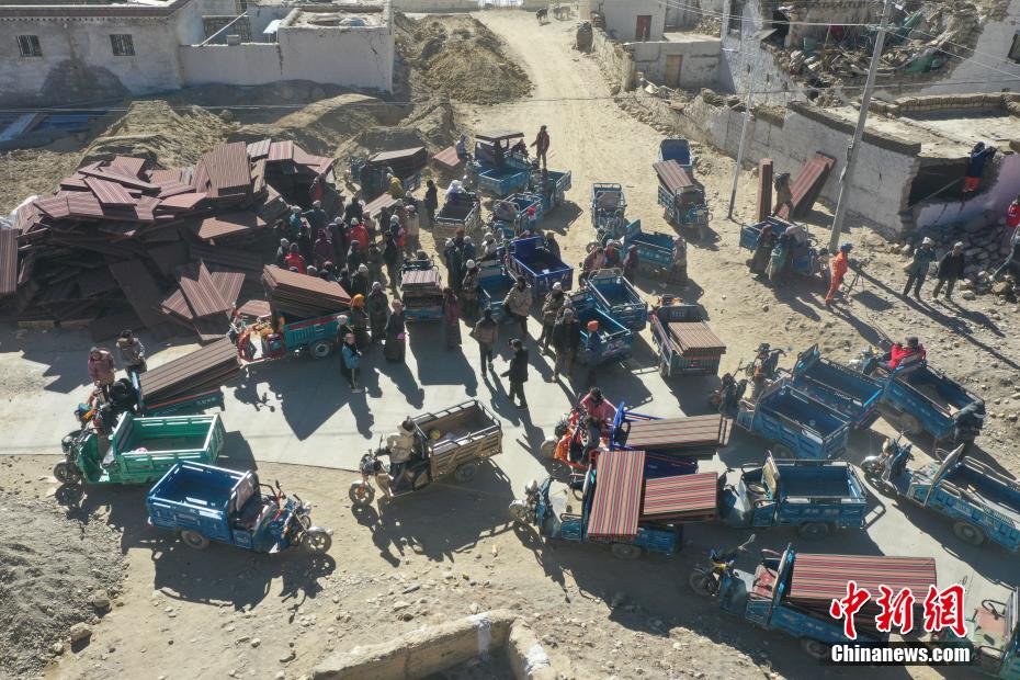 1月9日,西藏自治區(qū)定日縣曲洛鄉(xiāng)措昂村,滿載救災(zāi)物資的貨車抵達(dá)安置點(diǎn)。當(dāng)日,位于西藏自治區(qū)定日縣曲洛鄉(xiāng)措昂村安置點(diǎn),西藏各級(jí)救援人員和愛(ài)心企業(yè)不斷轉(zhuǎn)運(yùn)、發(fā)放生活物資、搭建活動(dòng)板房、全力保障受災(zāi)民眾的飲食供應(yīng)等,保障受災(zāi)民眾基本生活。中新社記者 貢嘎來(lái)松 攝