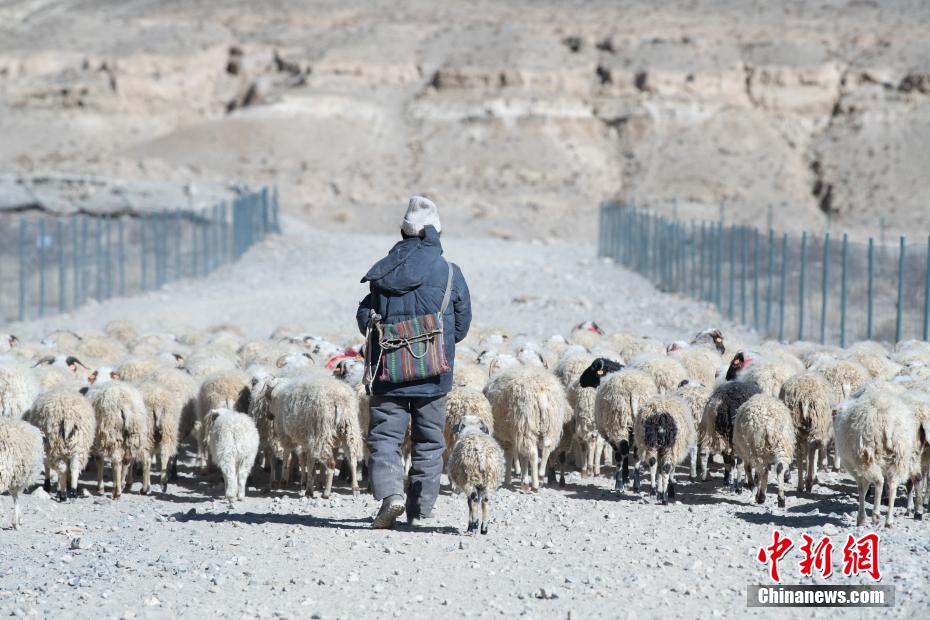 1月9日,西藏自治區(qū)定日縣曲洛鄉(xiāng)措昂村民眾在安置點(diǎn)附近放羊。當(dāng)日,位于西藏自治區(qū)定日縣曲洛鄉(xiāng)措昂村安置點(diǎn),西藏各級(jí)救援人員和愛(ài)心企業(yè)不斷轉(zhuǎn)運(yùn)、發(fā)放生活物資、搭建活動(dòng)板房、全力保障受災(zāi)民眾的飲食供應(yīng)等,保障受災(zāi)民眾基本生活。中新社記者 貢嘎來(lái)松 攝