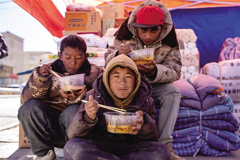“2023年,我們老家甘肅積石山發(fā)生地震的時(shí)候,我在日喀則,當(dāng)時(shí)心里很難受,但是看到全國(guó)都在支援老家,心里暖暖的。這次定日地震,我和老鄉(xiāng)立刻就過來了。能讓大家吃上熱飯、看到大家滿足的笑臉,我就很開心了。”馬俊云說。