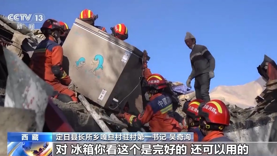 定日縣長所鄉(xiāng)嘎旦村駐村第一書記 吳奇洵:今天開始的,確定好了哪些戶的具體位置,就開始干了。冰箱是完好的,還可以用的,所以他們把能救出來的都救出來。