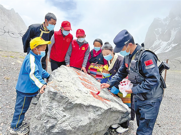 拉青拉山口是吉隆縣貢當(dāng)鄉(xiāng)境內(nèi)4座通外山口之一,也是中尼傳統(tǒng)邊貿(mào)通道,地形條件極其復(fù)雜。李錦一介紹,為增強(qiáng)黨員干部、邊境群眾和社會(huì)各界對國家安全、邊境穩(wěn)定的關(guān)心關(guān)注,貢當(dāng)鄉(xiāng)創(chuàng)新思路開展“國旗插在最前沿 我為祖國守邊關(guān)”系列活動(dòng)?;顒?dòng)定期邀請任職干部、返鄉(xiāng)探親干部、休假返鄉(xiāng)軍人、節(jié)假日在鄉(xiāng)學(xué)生等一同參與界樁描紅、同升國旗、邊境巡邏等各類活動(dòng),讓更多人參與到守護(hù)邊疆的行動(dòng)中來。