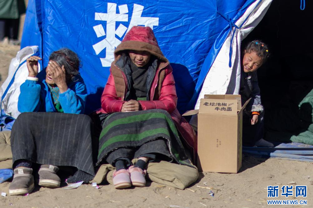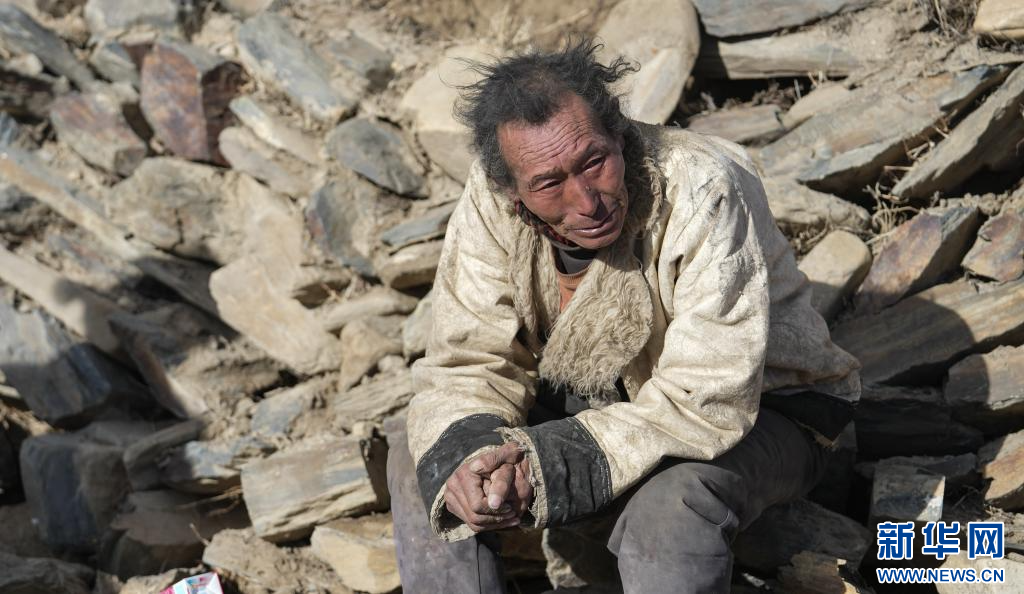 1月7日,古榮村的受災(zāi)群眾在已成廢墟的家門口哭泣。新華社記者 晉美多吉 攝
