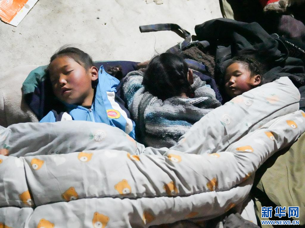 1月8日凌晨,受災(zāi)群眾在日喀則市定日縣嘎旦村的安置點內(nèi)休息。 新華社記者 丁汀 攝