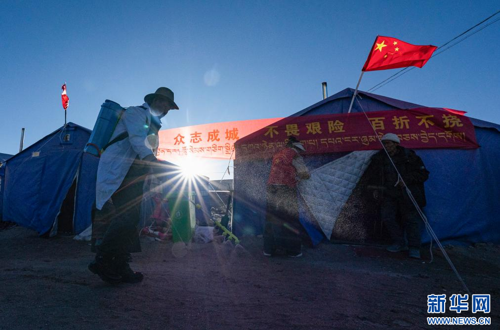 1月10日,在定結(jié)縣郭加鄉(xiāng)乃村安置點,村民在進(jìn)行消殺工作。 新華社記者 丁增尼達(dá) 攝