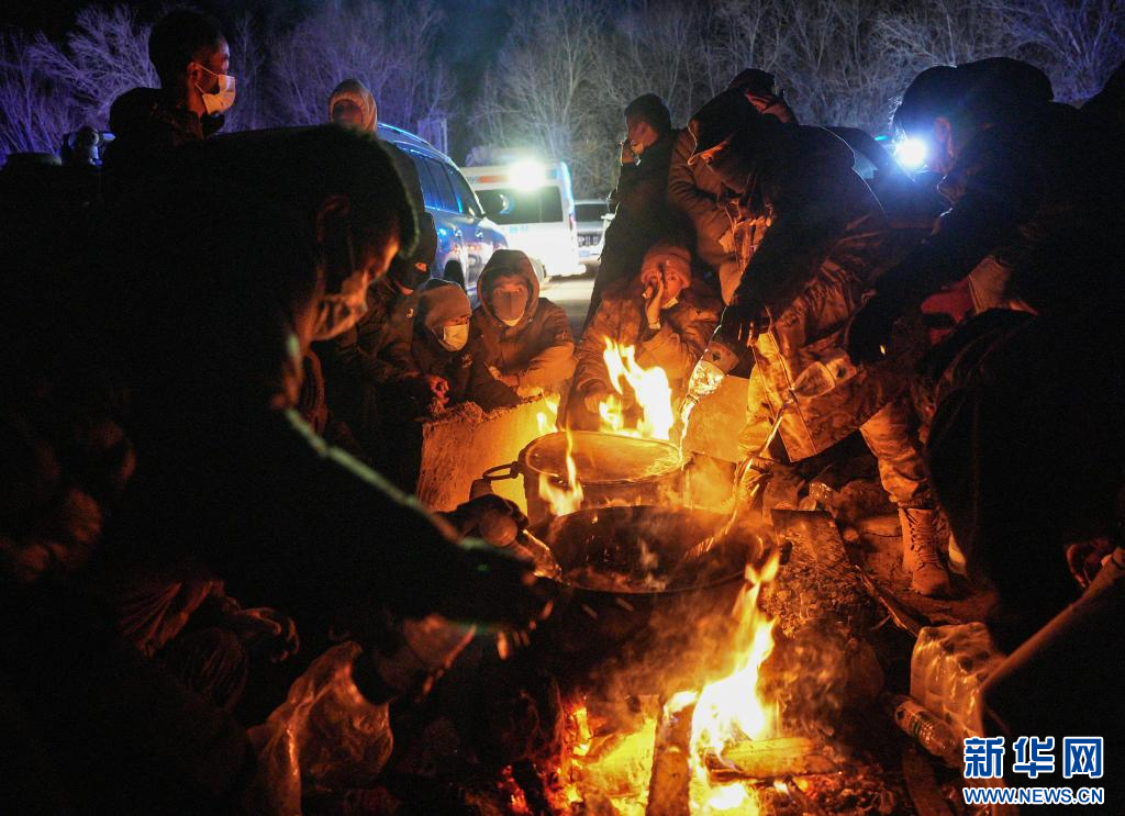 1月7日晚,長所鄉(xiāng)集中安置點的受災(zāi)群眾在煮水準(zhǔn)備泡方便面。新華社記者 晉美多吉 攝