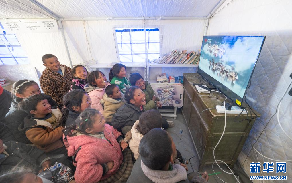 在定日縣長所鄉(xiāng)嘎布村,孩子們在看《西游記》(1月14日攝)。 新華社記者 丁增尼達(dá) 攝