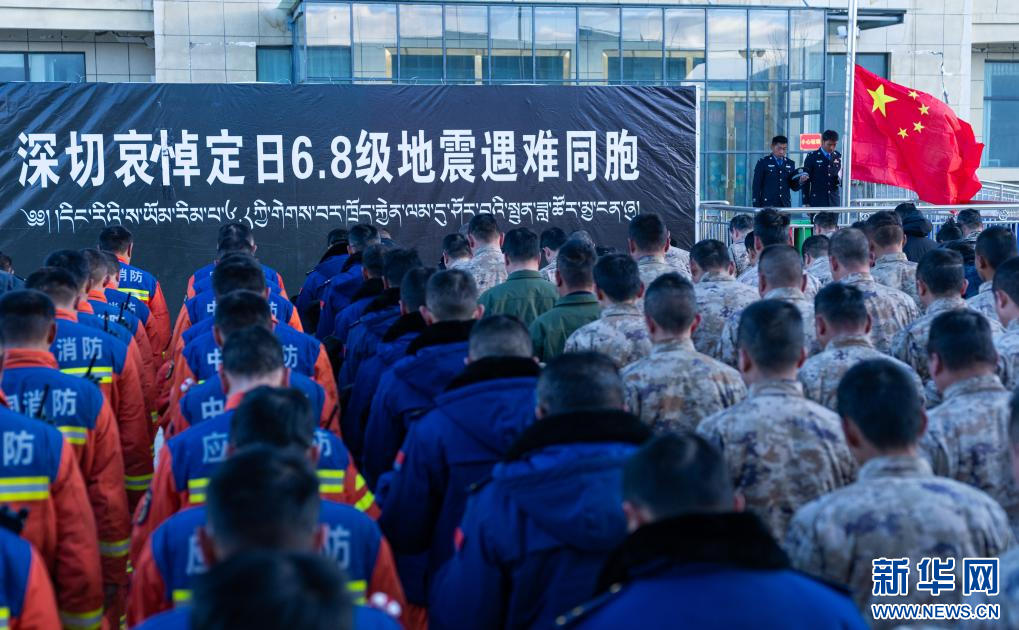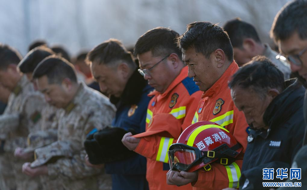 1月13日上午9時30分,西藏定日6.8級地震遇難同胞悼念儀式在受災(zāi)最嚴(yán)重的長所鄉(xiāng)舉行。參與救援的解放軍和武警官兵、消防救援人員、公安民警、醫(yī)護(hù)人員、青年志愿者及有關(guān)企業(yè)員工、干部職工、震區(qū)群眾代表數(shù)百人,脫帽肅立,向遇難同胞默哀3分鐘。 新華社記者 丁增尼達(dá) 攝