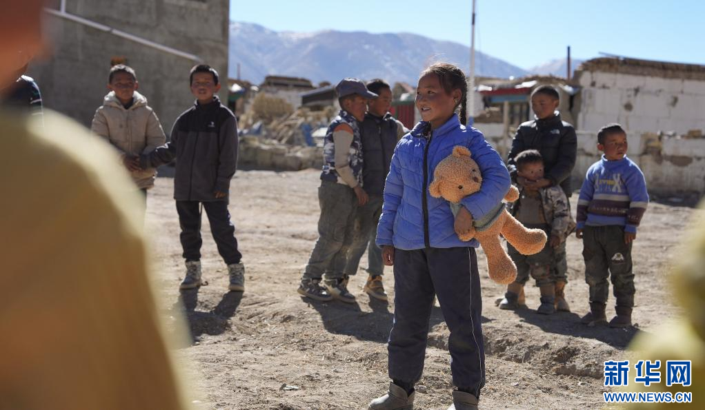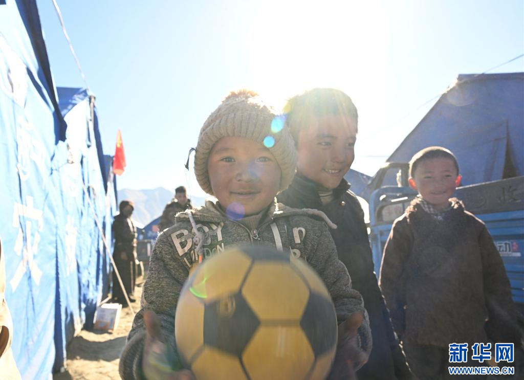 1月11日,薩迦縣麻布加鄉(xiāng)普村安置點的小朋友在玩球。新華社記者 李響 攝