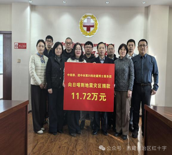 2025年1月7日,西藏日喀則市定日縣不幸遭受6.8級(jí)地震重創(chuàng),導(dǎo)致重大人員傷亡及財(cái)產(chǎn)損失。1月14日,中組部、團(tuán)中央第25批赴藏博士服務(wù)團(tuán)響應(yīng)黨中央號(hào)召順利抵達(dá)拉薩。雖然大家還沒(méi)完全克服高反帶來(lái)的不適,但災(zāi)情深深牽動(dòng)著所有博士服務(wù)團(tuán)成員的心,大家紛紛表示要捐款為災(zāi)區(qū)略盡綿薄之力。應(yīng)大家的要求,1月17日,博士服務(wù)團(tuán)舉行了抗震救災(zāi)募捐活動(dòng),共籌集善款11.72萬(wàn)元。