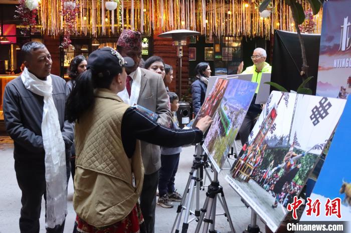 2月1日,參加活動(dòng)的來賓觀看中國西藏圖片展。 中新社發(fā) 中國西藏書店 供圖